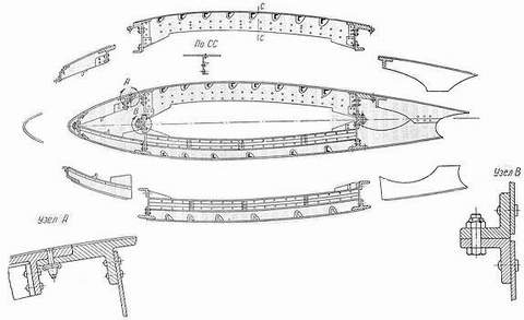 Иногда нервюры разрезаются в плоскости хорд для улучшения технологических свойств крыла.